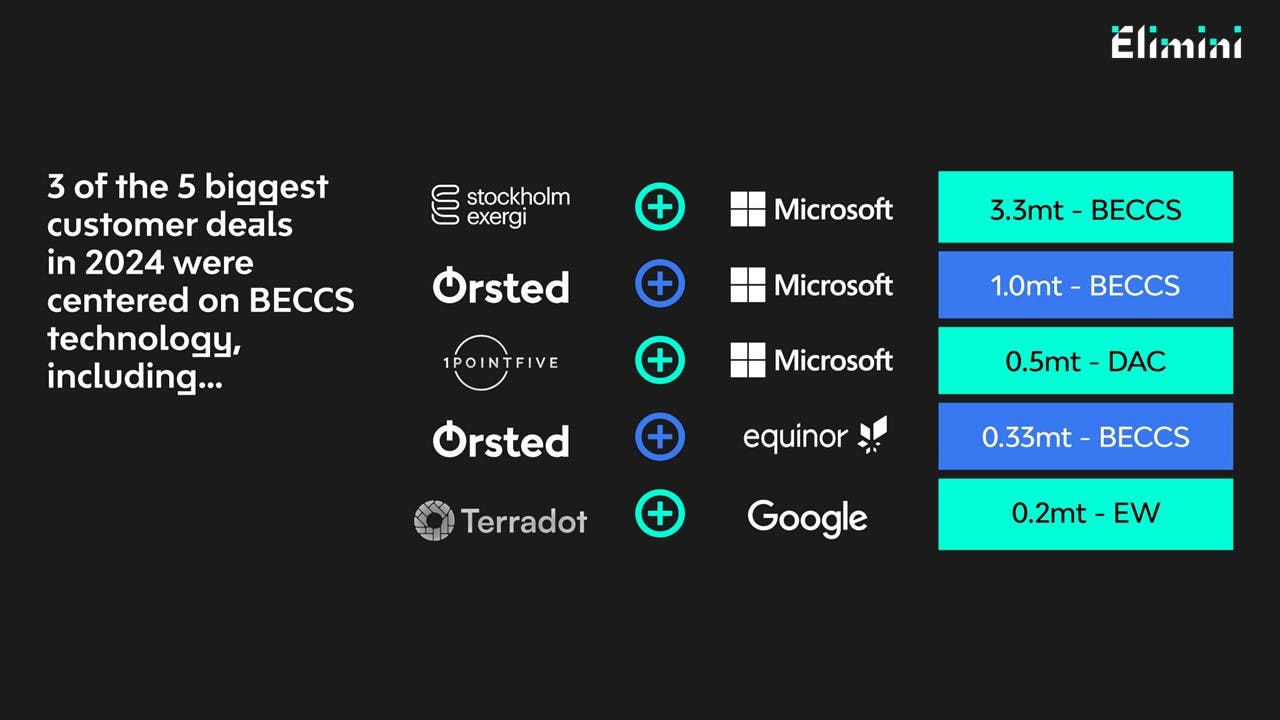 Engineered carbon removals, like those generated from bioenergy with carbon capture and storage (BECCS) or direct air capture (DAC) technologies, are reliable, measurable, and permanent – and in 2024, the market was clearly on the same page. Engineered CDRs captured significantly more of the market through bigger transactions, although the market saw fewer total transactions overall.